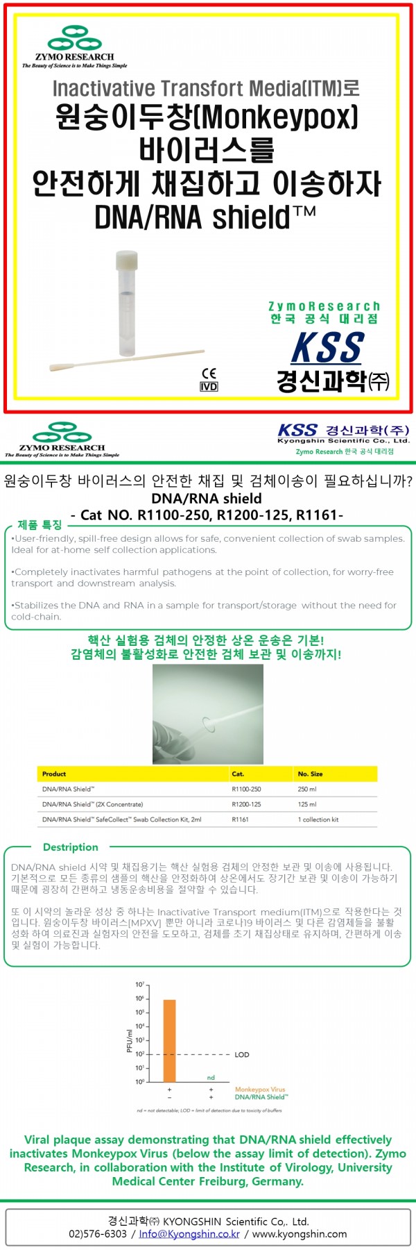 #경신과학 #KSS #Zymo #ZymoResearch #DNARNAshield #shield #원숭이두창 #Monkeypox #Virus #MPXV #ITM