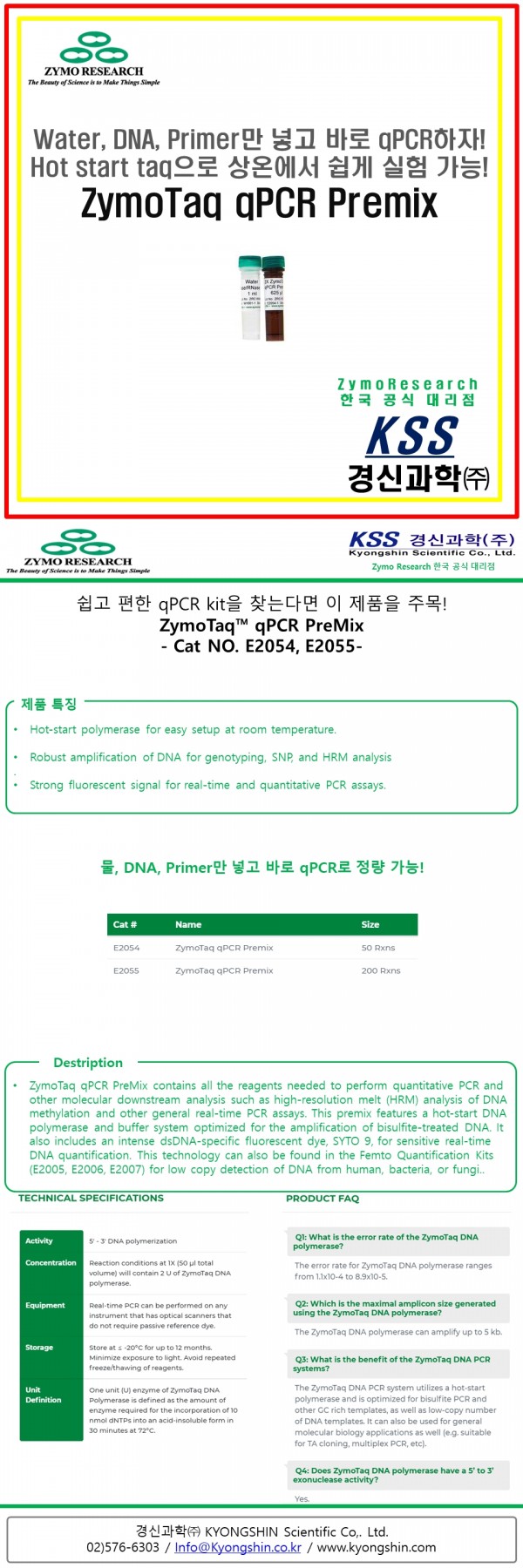 #경신과학 #KSS #Zymo #ZYMORESEARCH #qPCR #RT-qPCR #cDNA #Premix