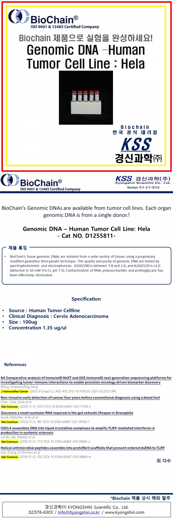 Genomic DNA – Human Tumor Cell Line: Hela_Biochain 페이지 정보 작성자 Kyongshin 작성일22-01-24 14:58 관련링크 https://www.biochain.com/product/genomic-dna-human-tumor-cell-line-hel… 11433회 연결 이전글 다음글 목록 본문 경신과학(주)는 Biochain 한국 공식 대리점입니다 *해외발주는 상시 진행됩니다. 이전글 다음글 목록