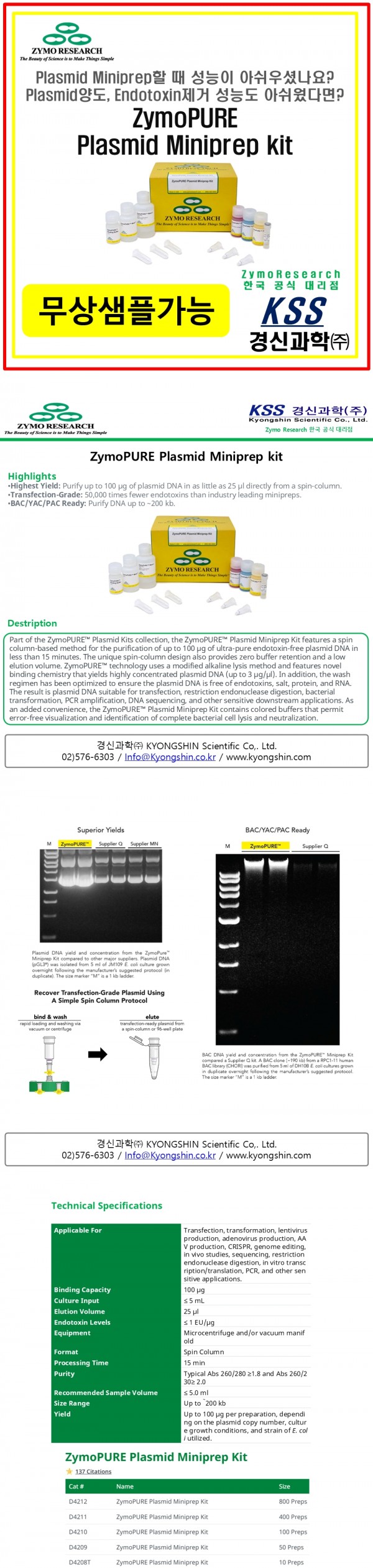 #경신과학 #KSS #Zymo #ZymoResearch #ZymoPURE #Plasmid #Miniprep #Transfection_Grade