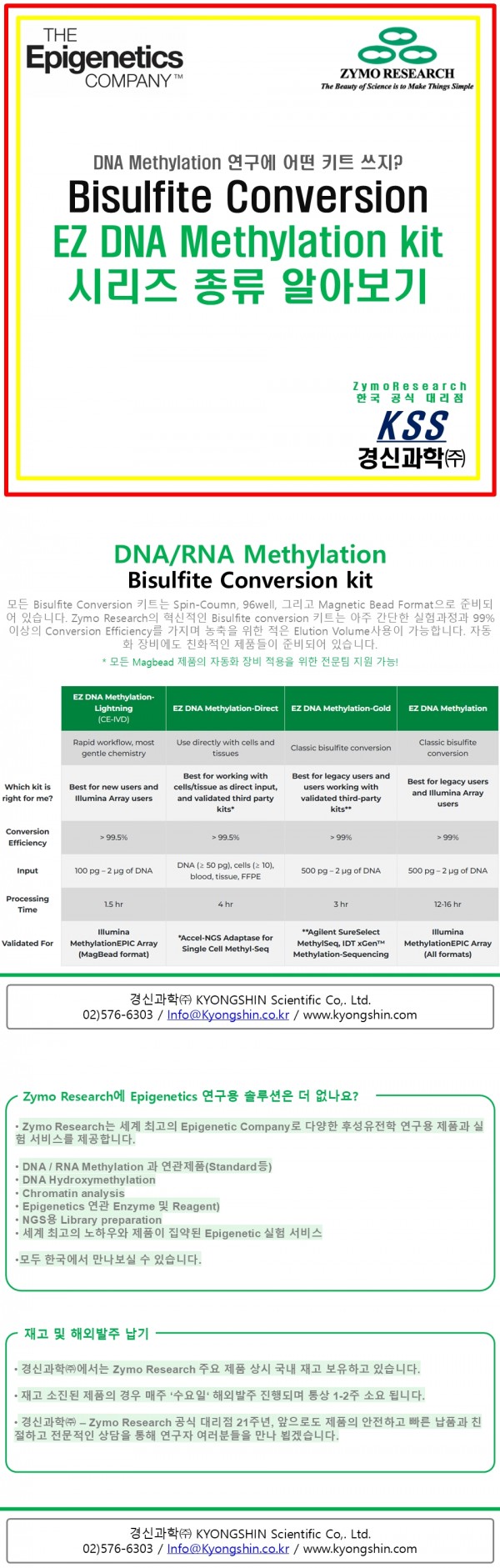 #경신과학 #KSS #Zymo #ZymoResearch #Epigenetics #DNAMethylation #BisulfiteConversion #Howtochoose?