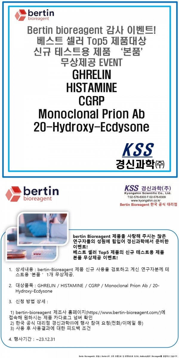 #경신과학 #KSS #bertin #bertinBioreagent #Top5 #event #Ghrelin #CGRP #Prion #20Hydroxyecdysone #Histamin #ELISA #Antibody