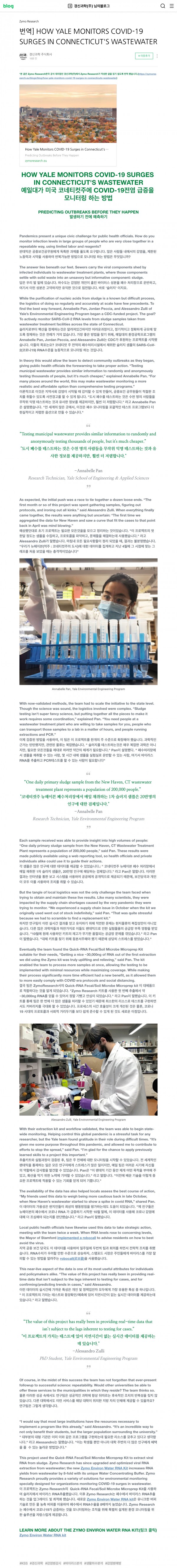 미국 코네티컷 주 연구팀과 함께 Zymo Research제품으로 연구되었던 사례를 통해