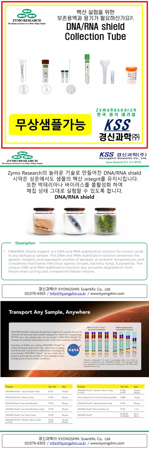 #경신과학 #KSS #Zymo #ZymoResearch #DNARNAShield #NucleicAcidPreservation #CollectionTube