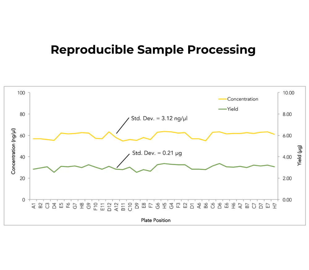 The automation friendly workflow enables nearly any sample to be processed in as little as 90 minutes for 96 preps.