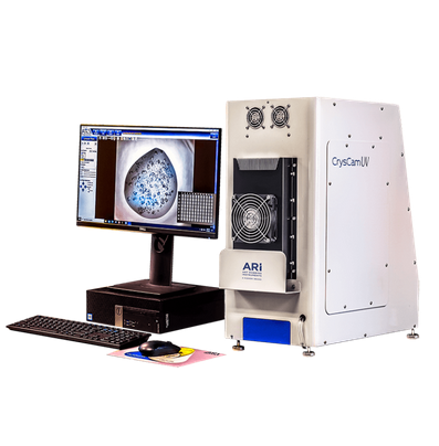 The ARI CrysCam UV Imaging System automatically scans plates capturing visible, UV, and fluorescent images. The instrument reads and captures all of your protein crystallization images in visible light and/or UV light.